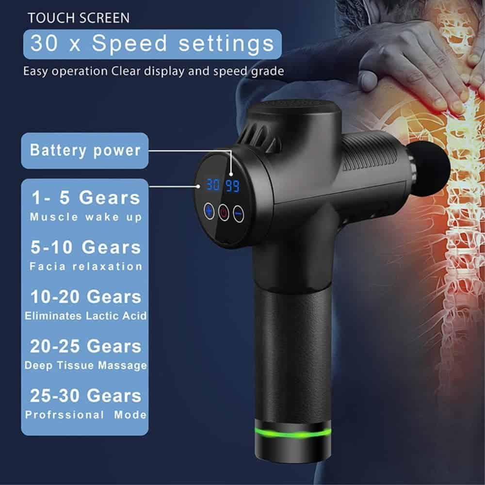 Massagepistol er den perfekte gaveide til den du holder af og ønsker at de har det bedre. Massagepistolen har 30 hastigheder, så du har et væld af hastigheder, at vælge i mellem. Massagepistolen kommer med 6 massagehoveder, så du kan benytte det hoved, der giver bedst mening for dig og der hvor du vil masseres.