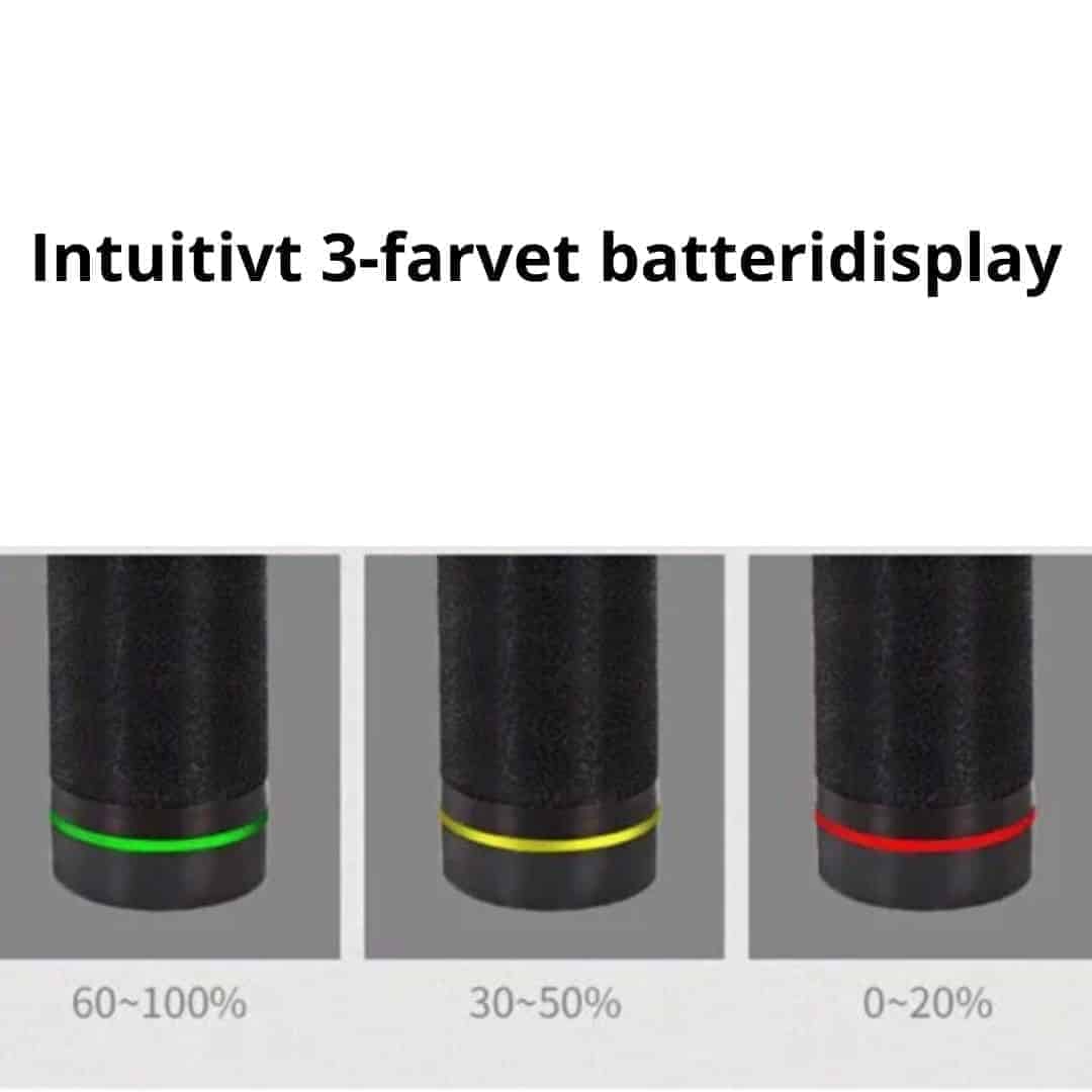 Massagepistolen er håndholdt og kan betjenes nemt og simpelt. Ved fuld opladning har massagepistol pro en massagetid på mellem 3-6 timer, så du er sikker på at kunne få masseret der, hvor du har behov for det. Og det tager der kun 1,5-2 timer at oplade den helt!